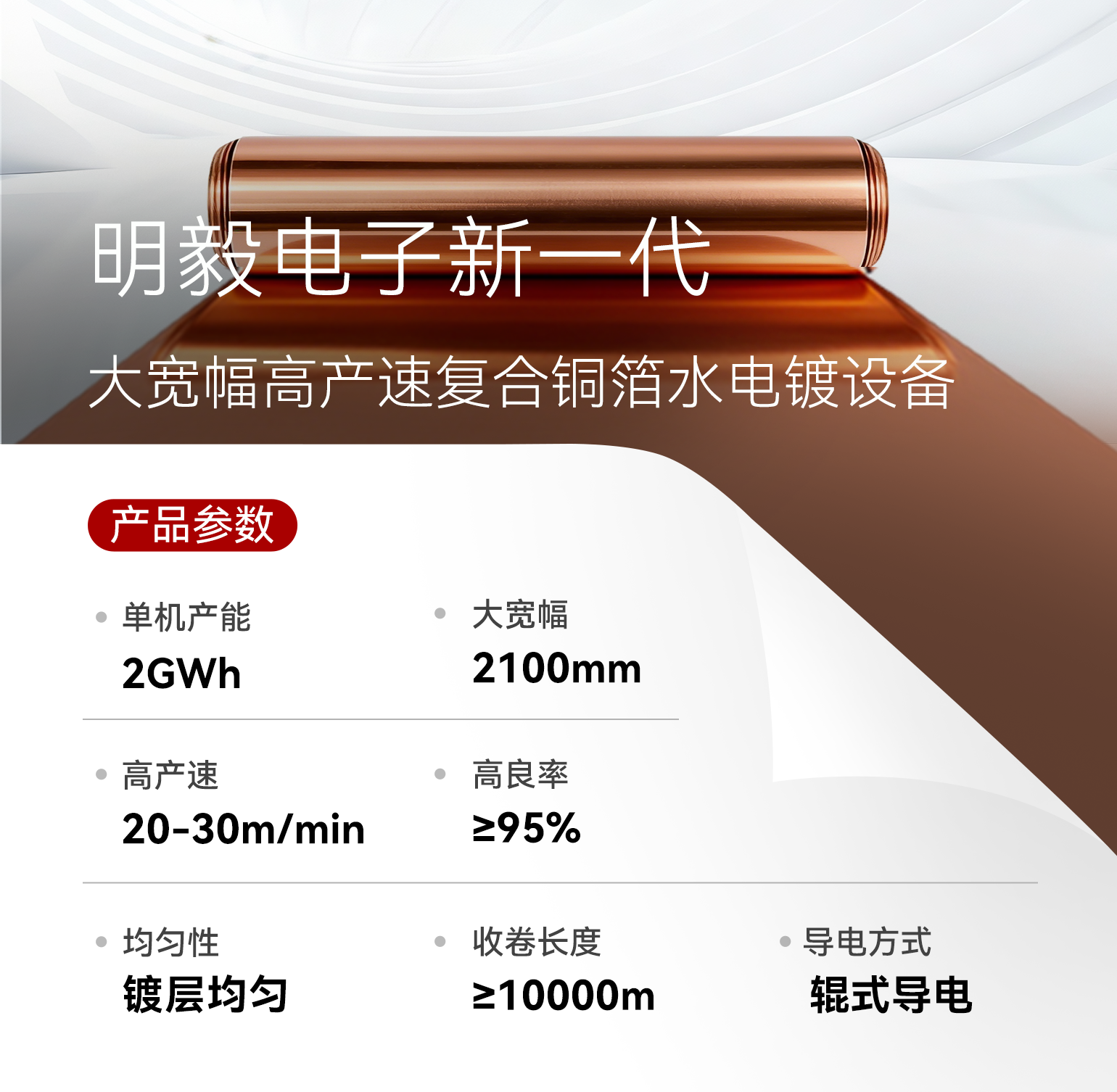 新一代宽幅高速复合铜水电镀设备,单机年产能可达2GWh,打破了长久以来的效率瓶颈。近期,新一代复合铜箔水电镀设备已与国内头部企业顺利签单并有序推进设备交付。